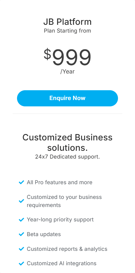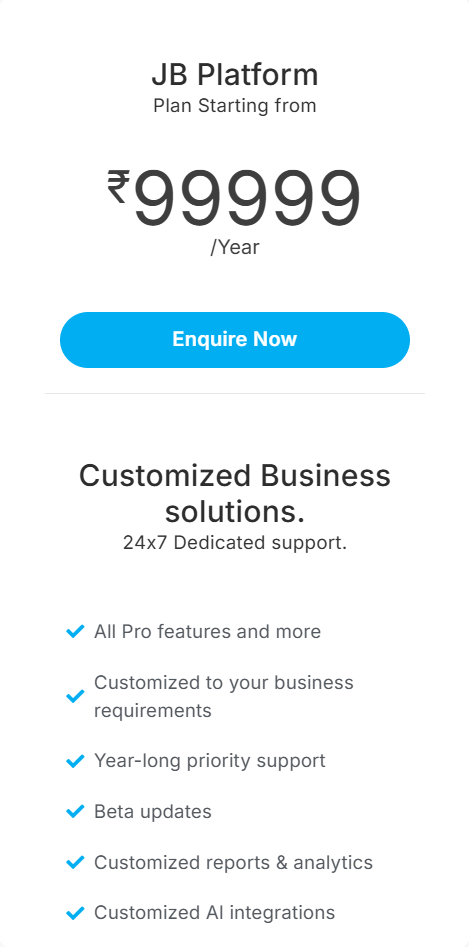 For enterprise requirements needing customization, we can tailor the Just illing platform to your specific needs. Our teams will collaborate with you to unleash the power of the Just Billing platform across your business.